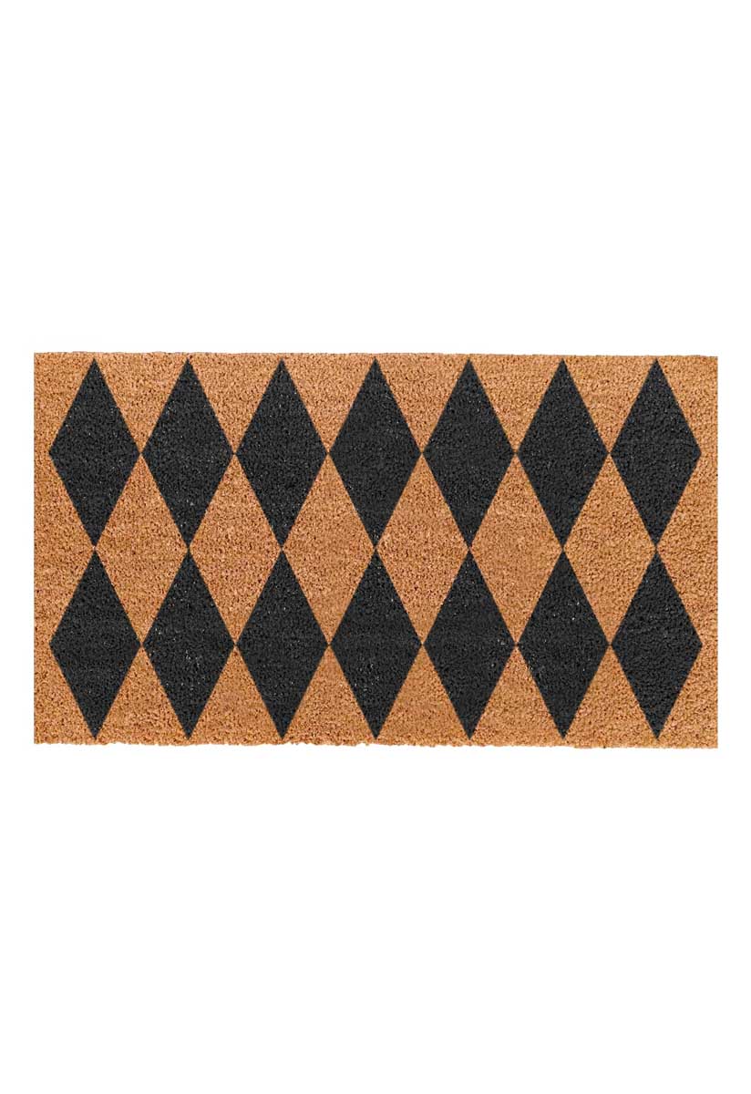 PVC Backed Coir Doormat - Black Harlequin